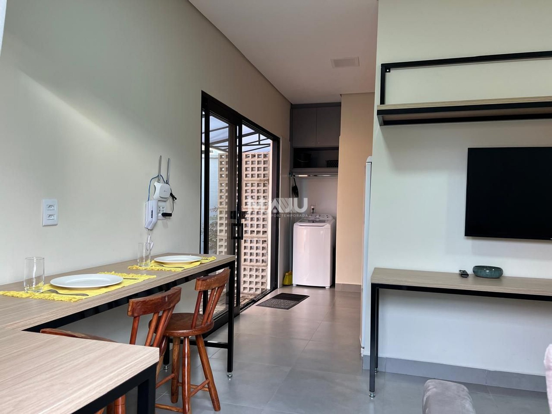 - Cozinha/lavanderia: armário planejado, fogão elétrico de 2 bocas, geladeira, filtro anexado à torneira, microondas, sanduicheira, liquidificador, air fryer, utensílios básicos (copos, pratos, talheres e panelas), tanque e máquina de lavar para até 8,5 kg.