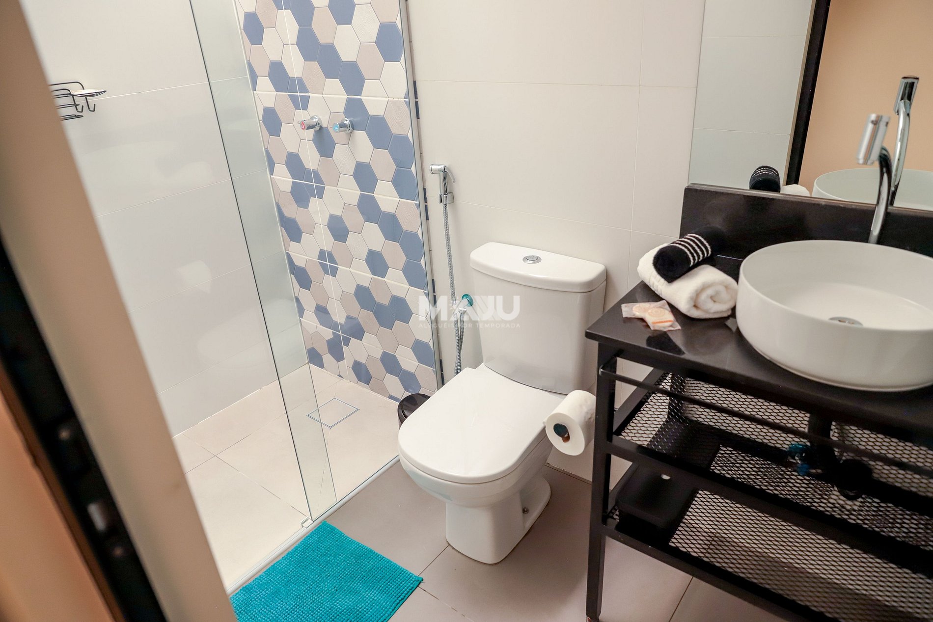 - Banheiro: chuveiro com água quente e secador de cabelo. Disponibilizamos também: sabonete de uso pessoal, papel higiênico e toalhas de banho (conforme a quantidade de hóspedes).