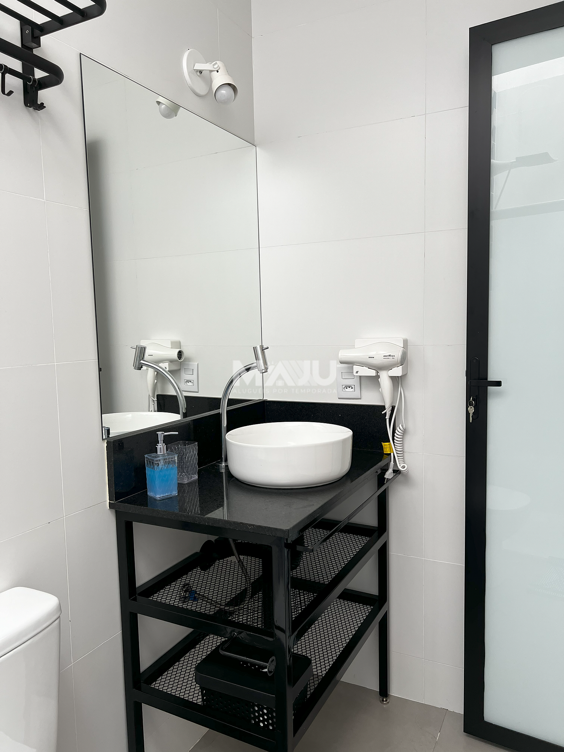 - Banheiro: chuveiro com água quente e secador de cabelo. Disponibilizamos também: sabonete de uso pessoal, papel higiênico e toalhas de banho (conforme a quantidade de hóspedes).